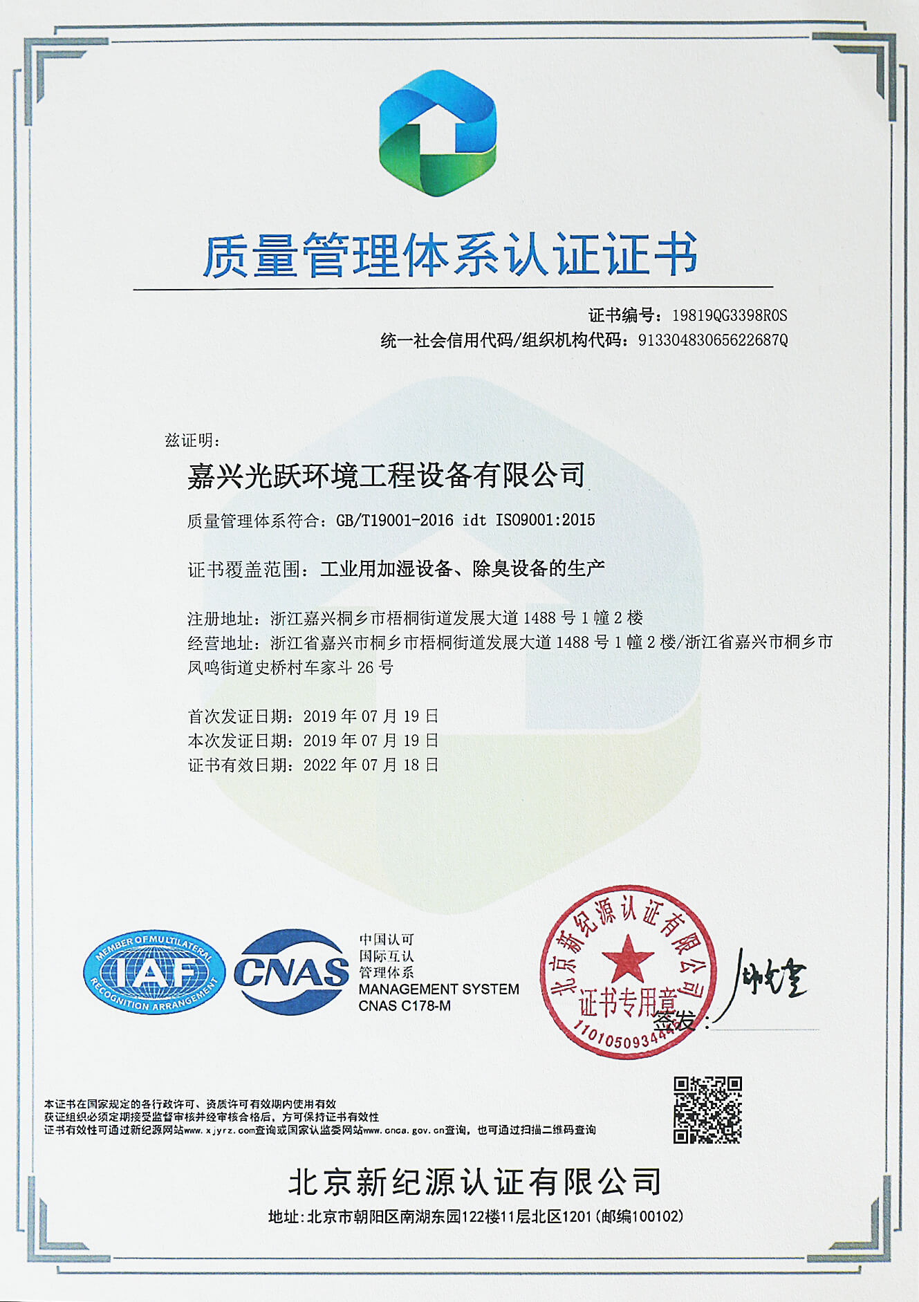 通過了ISO9001、ISO14001、OHSAS18001、AAA和CE等管理體系的認證